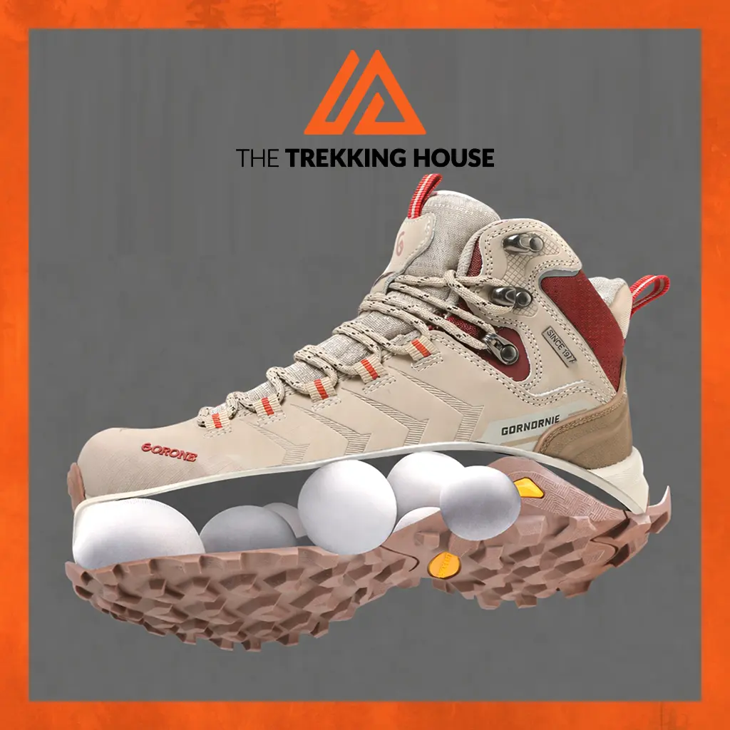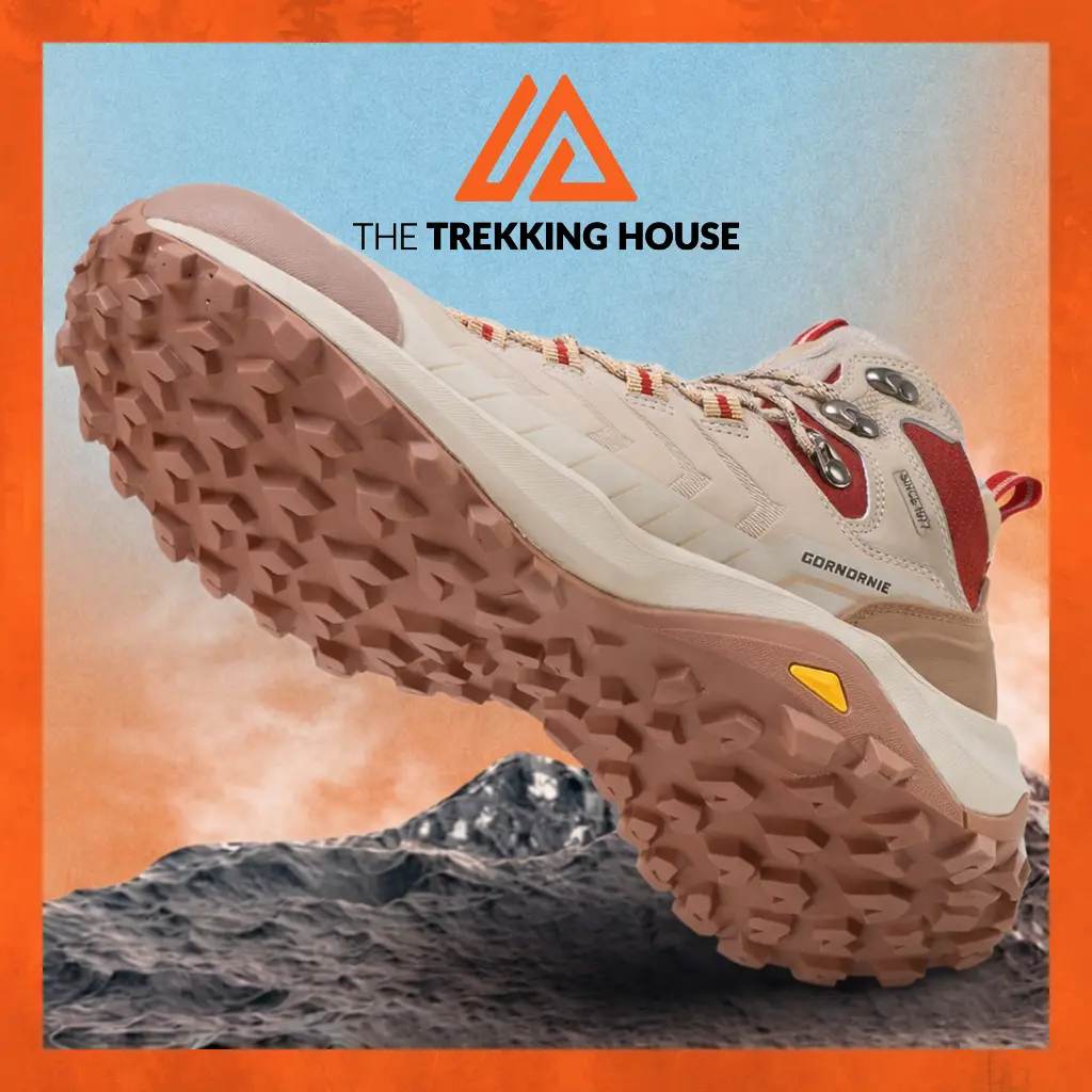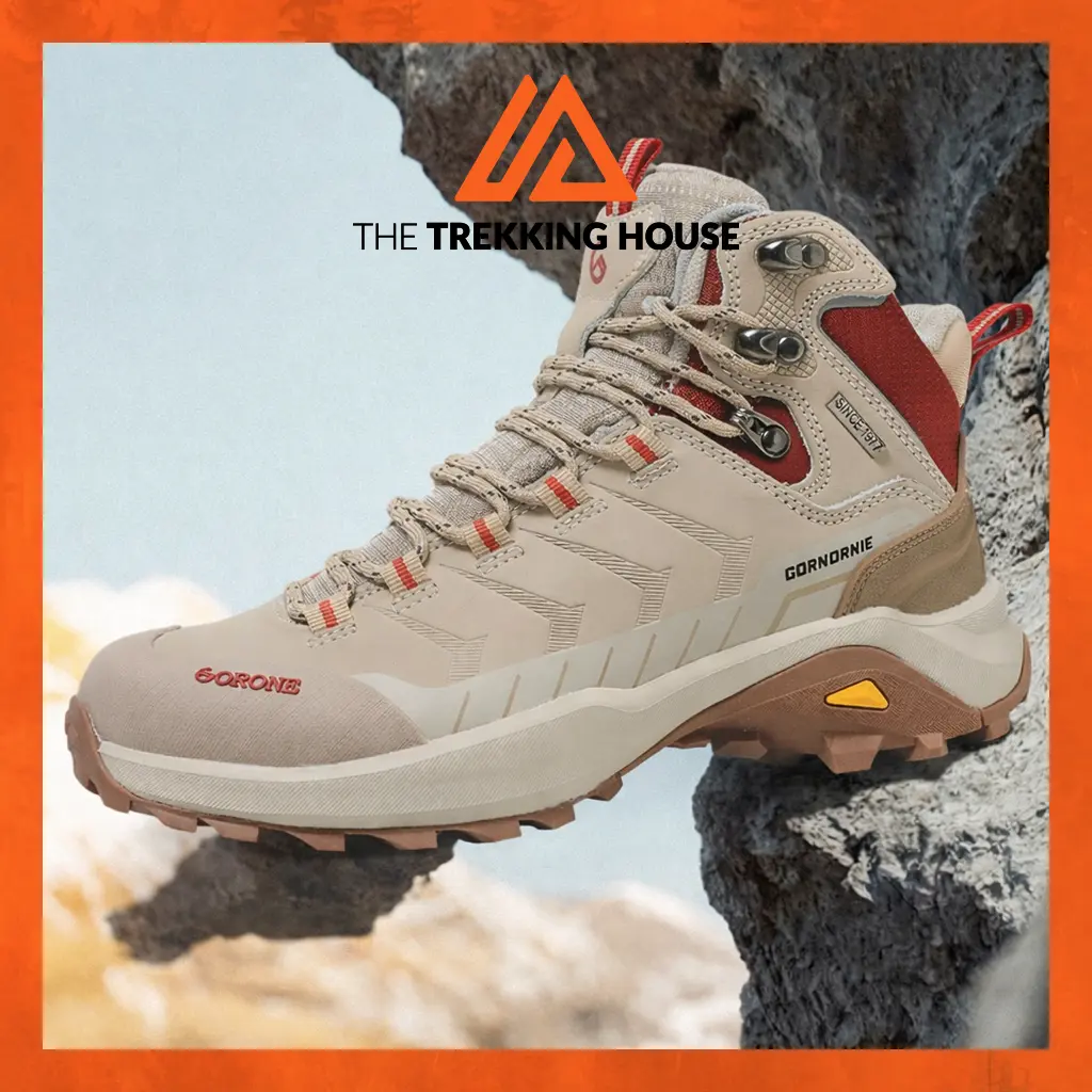 Giày leo núi trekking chống thấm nước Gornornie Horizon Mid – Light Grey/Dark Red
